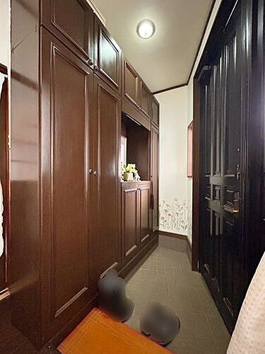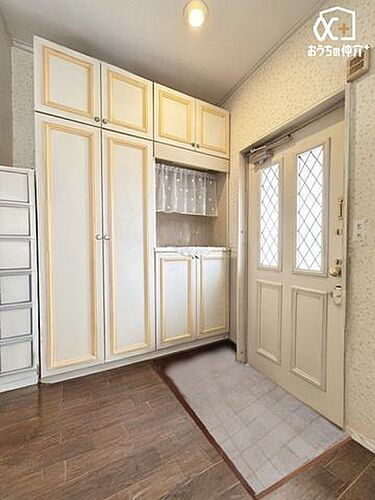 1階玄関の様子シューズボックス付き、棚もございますので飾り物等にもお使いいただけます!