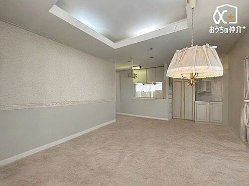 2階リビング!こだわりの壁紙で、全体的にまとまりがあるおしゃれな空間間接照明で、お部屋の雰囲気や調光も行う事ができます!※本画像は家具をCGで消した画像であり現況とは異なる場合がございます