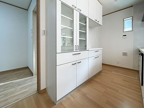 カップボード付きで使い勝手の良いキッチン。