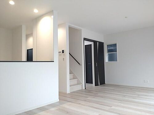 【リビング】大きな窓のあるリビングは、陽光あふれる明るい空間です。居心地良く、ご家族皆がゆったり寛げる憩いの空間となりそうです。