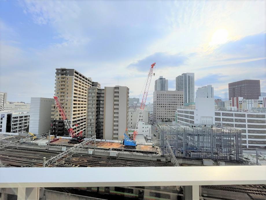 バルコニーからJRタワーを望むことができます