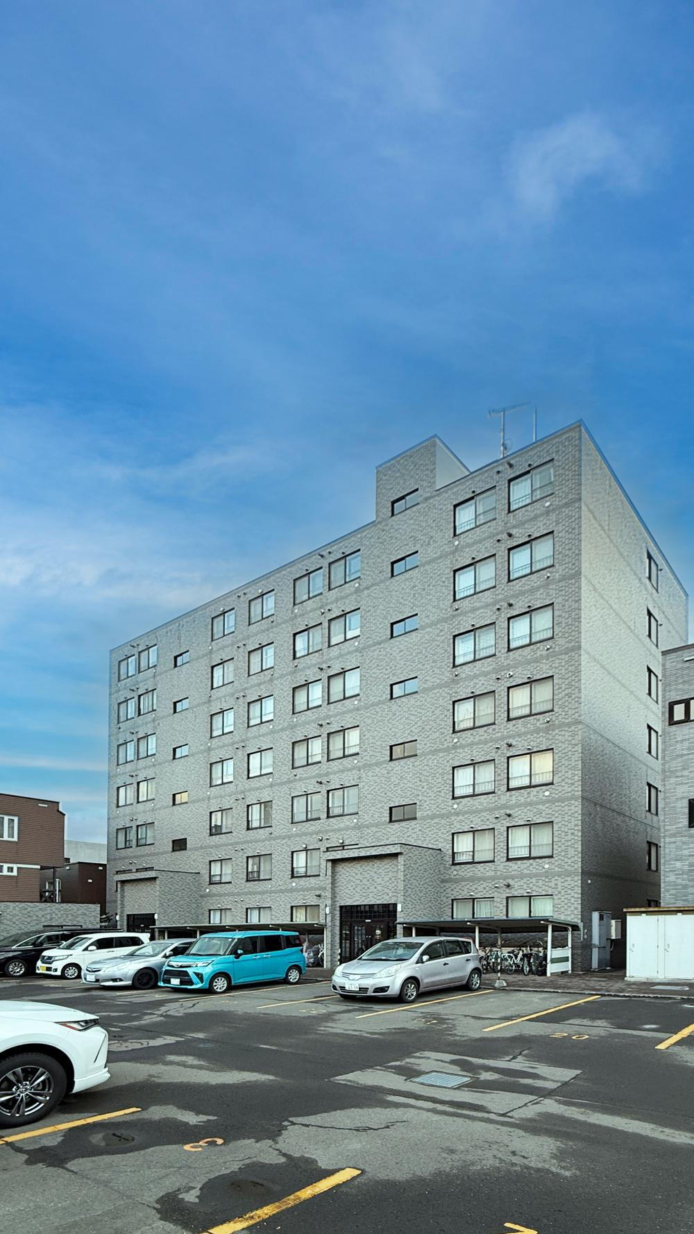 【重厚感あるタイル貼りの外観】管理体制が良好で、共用部も綺麗に保たれています。敷地内駐車場は月額8000円とリーズナブル(空き要確認)。オートロック完備でセキュリティ面も安心のマンションです。