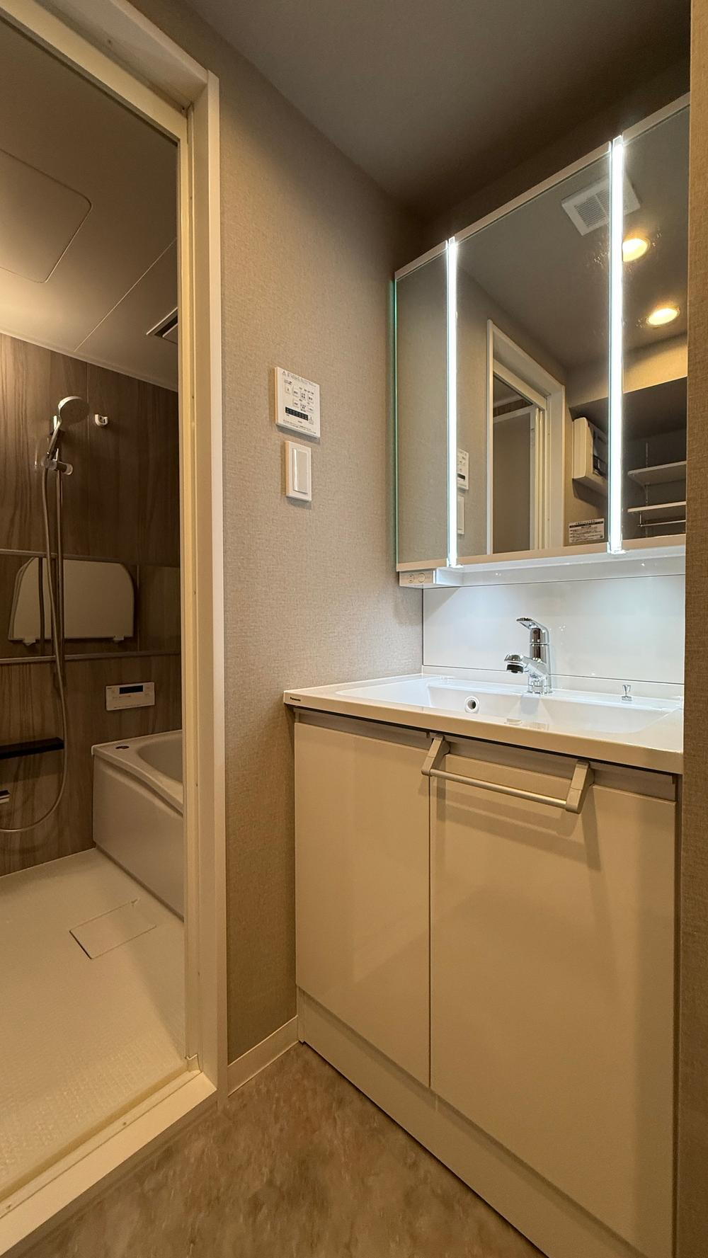 【清潔感のあるサニタリー】洗面化粧台とトイレ(温水洗浄便座付)も新品に交換済み。肌に触れる部分が新しいのはリノベーション物件ならではの特権です。クロスや床材も一新され、気持ちよく使えます。