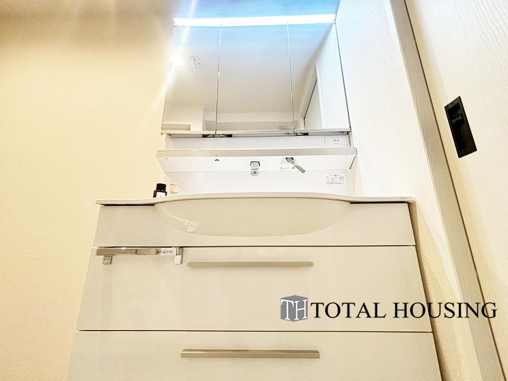 一日の始まりの朝、歯磨きをしたりメイクや髪をセットしたり・・・使いやすさが考えられた3面鏡です♪シャワー付水栓で洗面台でのシャンプーや毎日の掃除に大変便利ですね♪