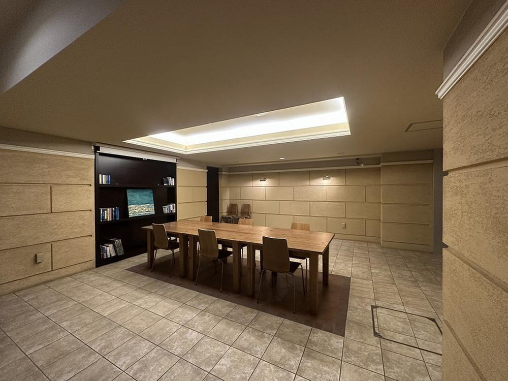 落ち着いた雰囲気の共用ラウンジ。来客時の打ち合わせや住民同士の交流に便利です。