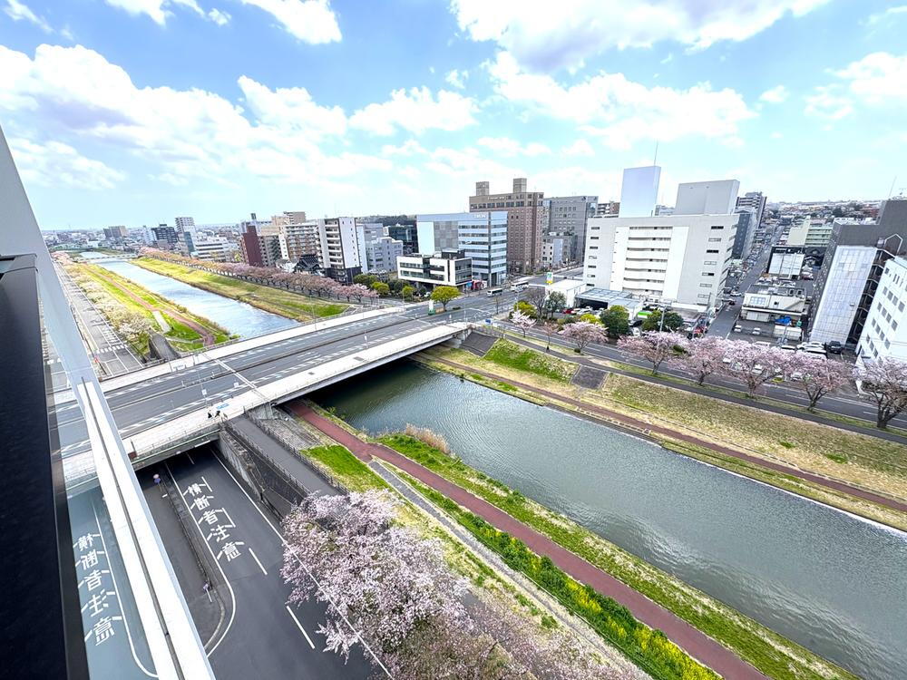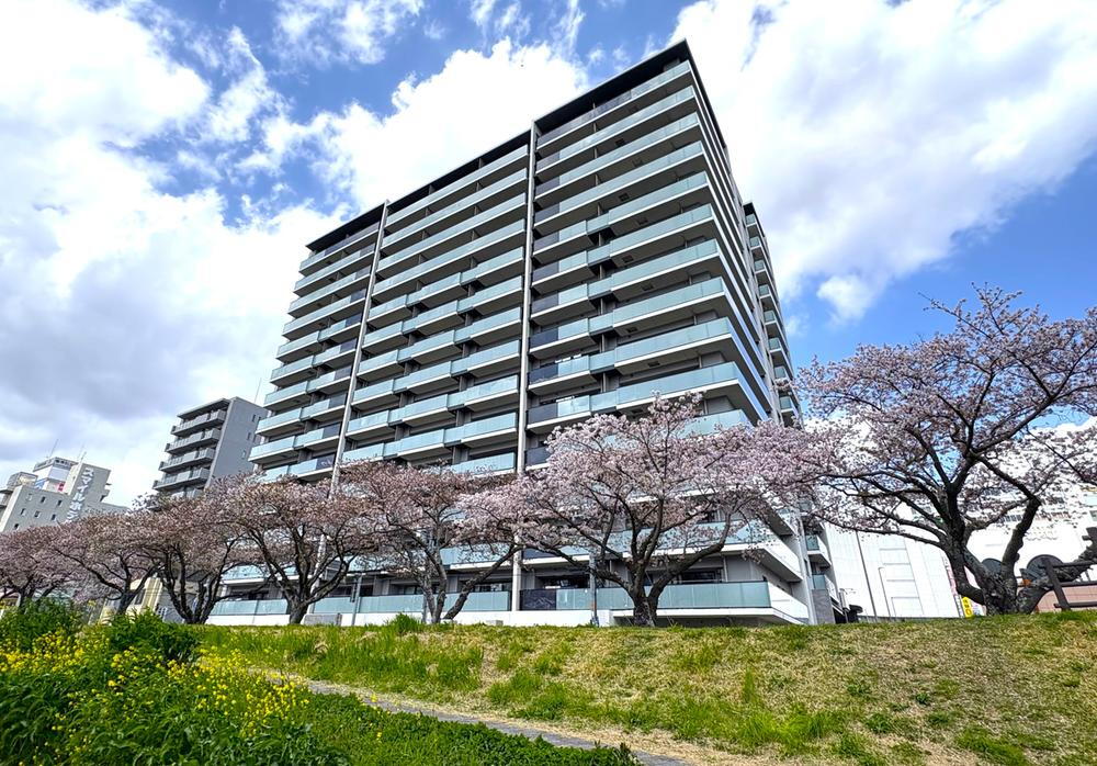 目の前は桜川が流れており、春になれば桜並木をお散歩できます♪