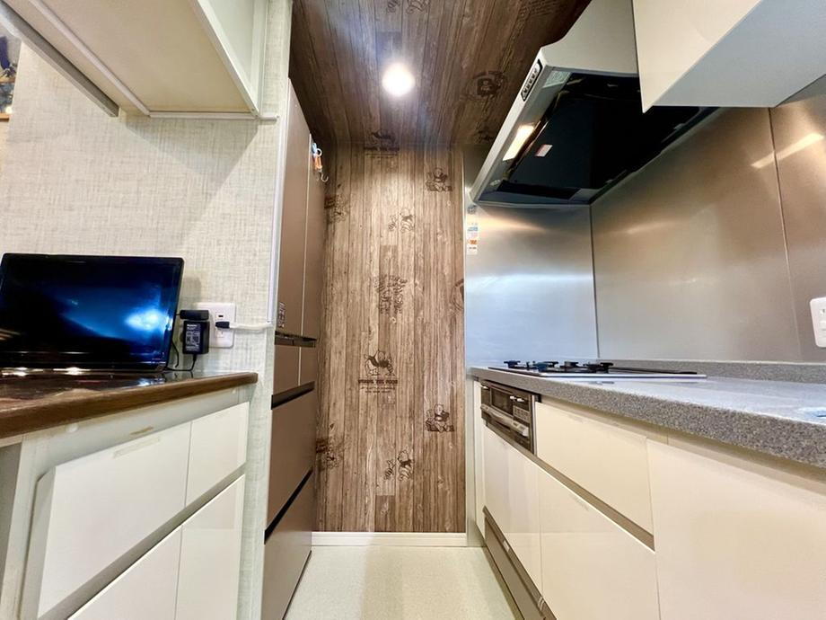 システムキッチンが設置されており、効率的な調理が可能です。