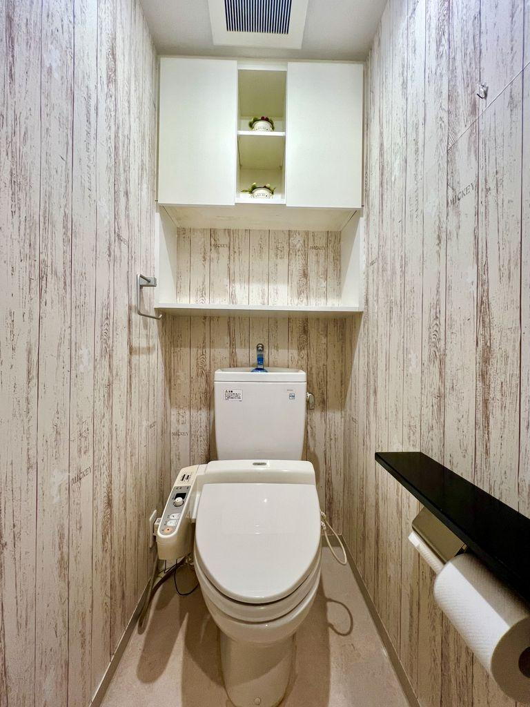 吊り戸棚下の棚も活用でき、高い収納力です。トイレは温水洗浄便座機能付き。