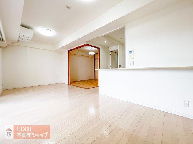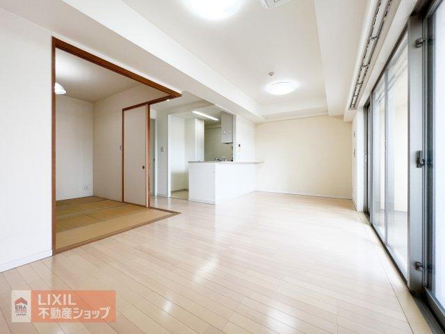 現地写真 明るい日差しの入る14.3帖のリビングは和室と繋げても使えます