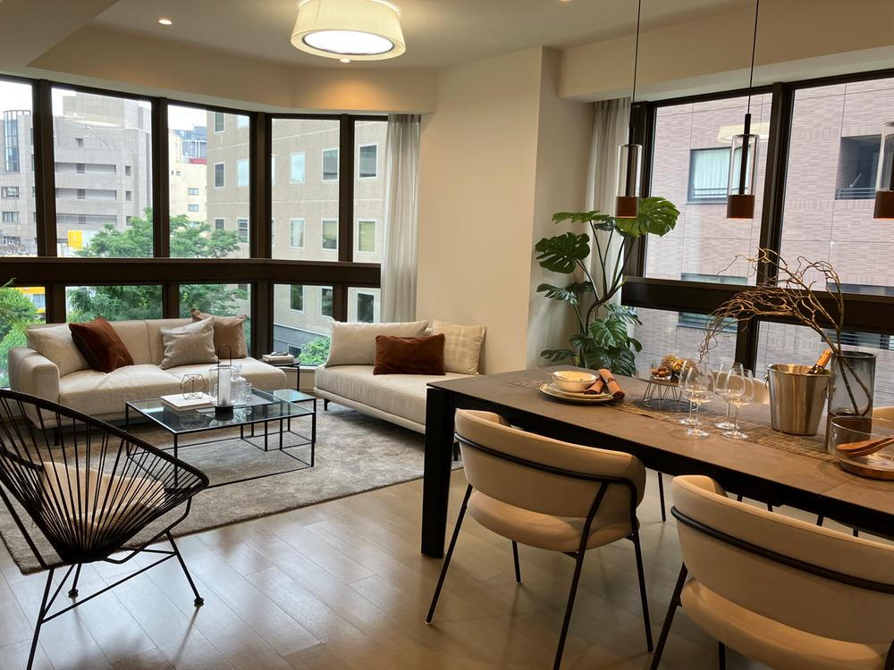 床暖房付きの約17.5帖リビングダイニング。窓が大きいため室内も明るくなります。 -