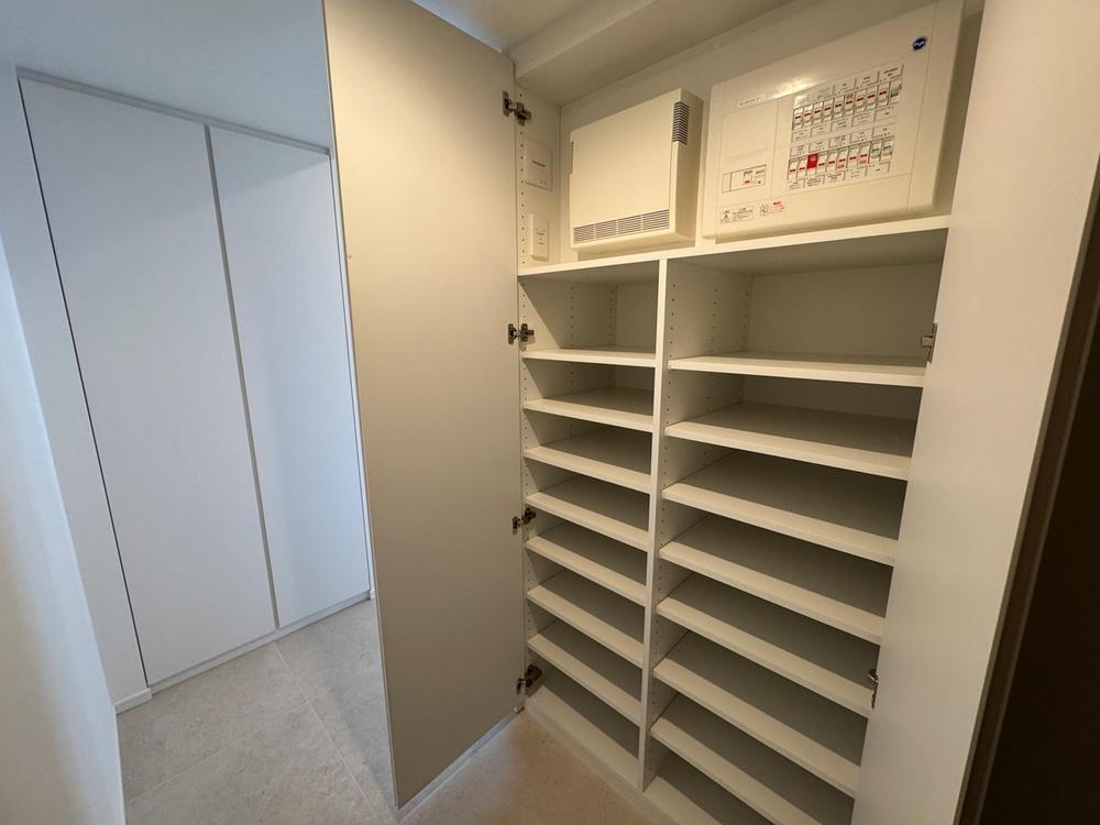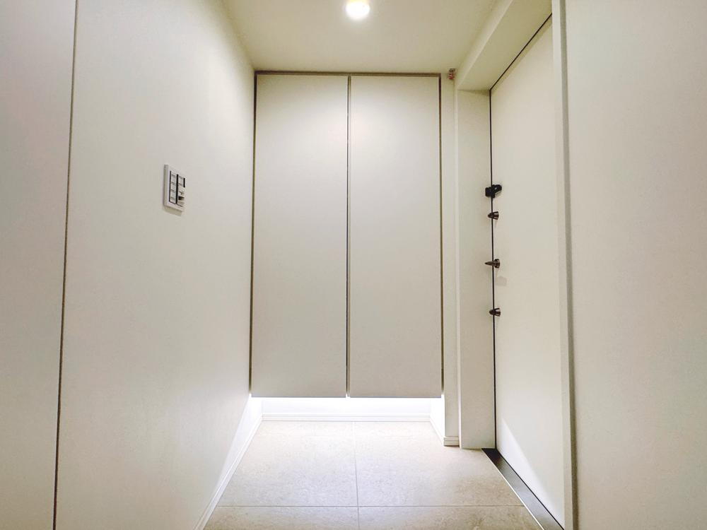 玄関には大容量収納可能なシューズクローゼットを設置しております。ご家族みんなの靴をしまってもまだ余裕のある大きさ。