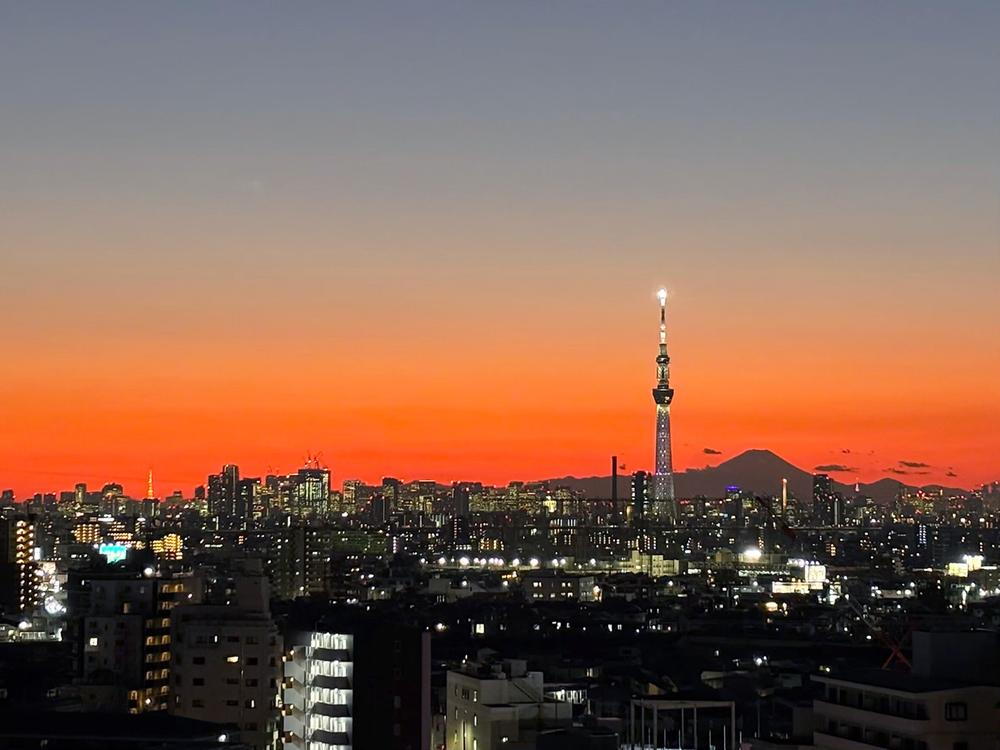 夕暮れ時のスカイツリーを望めます。
