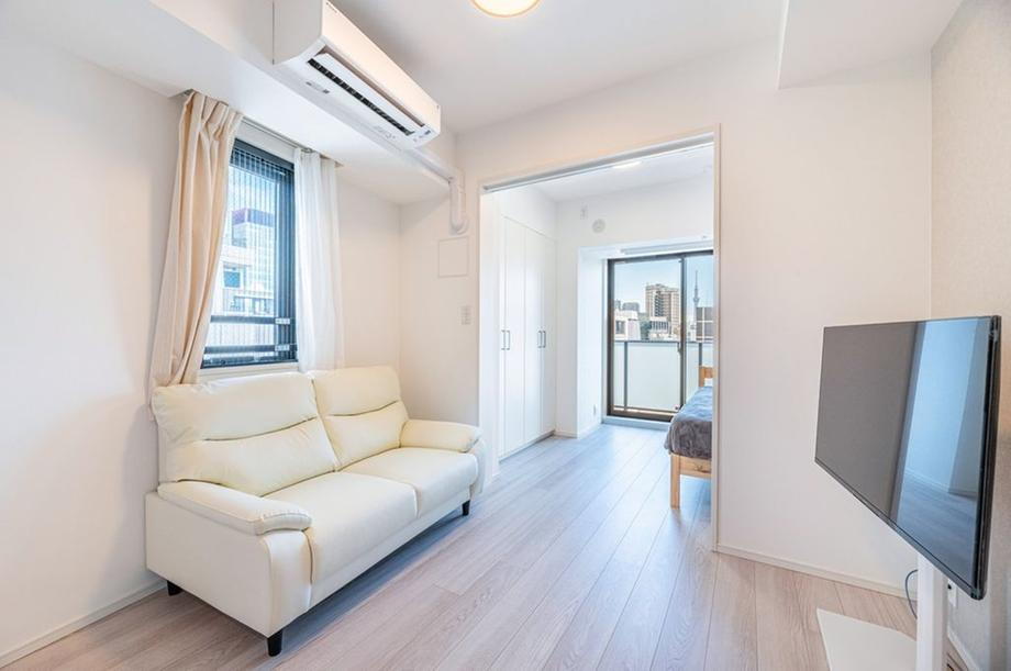 お部屋からスカイツリーを望めます(天候による)。人の視線も気にならず、のびのびお過ごしいただけます。 -