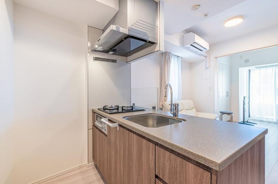 対面式キッチンが採用されています。リビング・ダイニングにいる、ご家族の様子を見守りながら調理が可能です。※家具調度品は売買対象に含みません。 -
