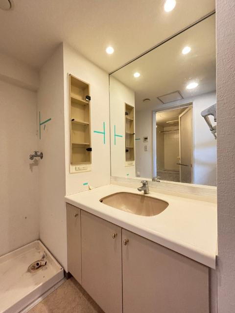 大きな鏡のある洗面台です