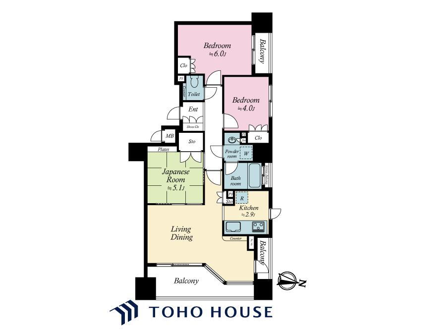3LDK、価格7380万円、専有面積62.2m2、バルコニー面積11.09m2