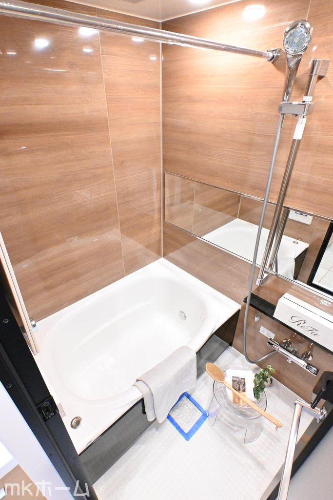 足を延ばし入浴できる大きな浴槽は一日の疲れを癒してくれる空間です!癒しのひと時をお過ごしください!