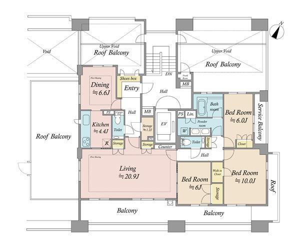 3LDK、価格9980万円、専有面積126.42m2、バルコニー面積24.75m2