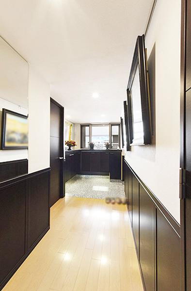 広々とした玄関ホール。窓がついており、光が差し込み明るい空間に。十分な収納スペースがあります。