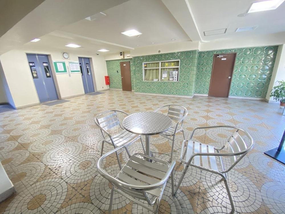 ロビーには4人掛けの椅子とテーブルがあります。エレベーターも2基ありました!