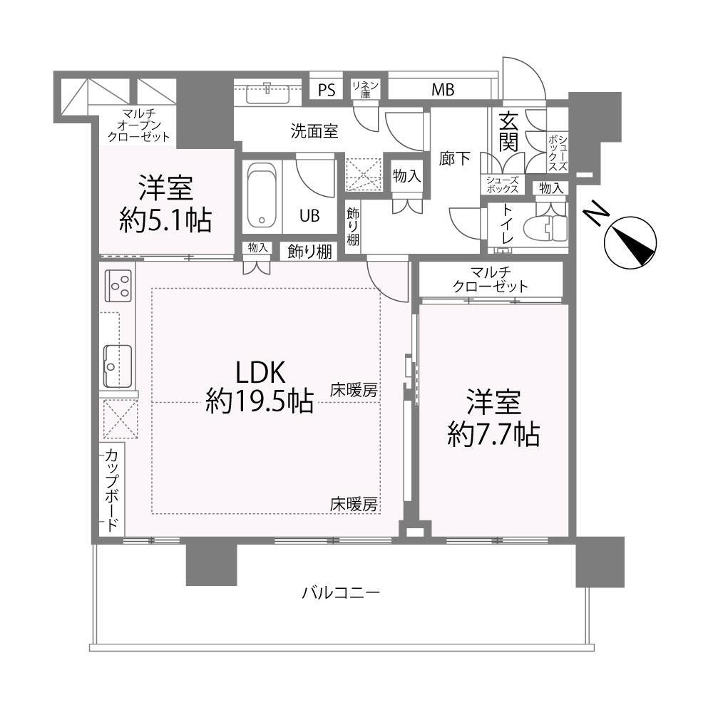 2LDK、価格2億6800万円、専有面積77.56m2、バルコニー面積17.64m2