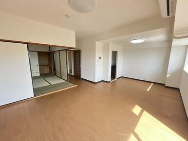 約12帖のリビングスペース。床は絨毯だったのをフローリングに張替済み。クロスも張替されてます。