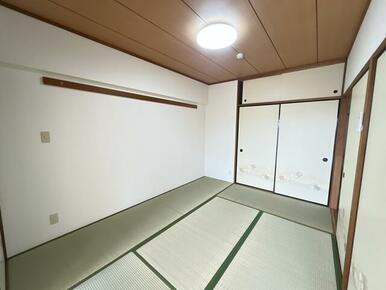 6畳和室別角度写真です。畳は新品に交換、襖は張替を行っております。