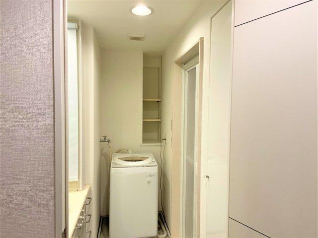 サーバスシティ柏 12階 洗濯機の背面に収納棚があります。洗剤や柔軟剤などを置くのに便利です