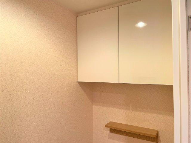 サーパスシティ柏 12階 トイレに吊戸棚あり。トイレットペーパーなどの収納に便利