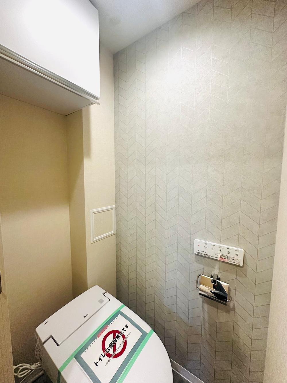 温水洗浄便座付きトイレです。優れた節水効果や汚れが付きにくい便座など、ほしかった機能が揃ったウォシュレット一体型トイレです。収納に便利な吊戸棚を備え付けています。