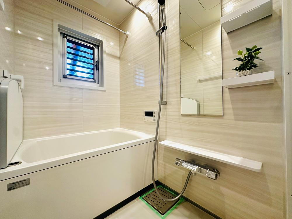 ホワイトのパネルで囲まれた清潔感のあるバスルーム。浴室乾燥機搭載で雨の日の洗濯もらくらくです。冬場は入浴前に浴室内を温めておくと寒い時間がなく快適です♪