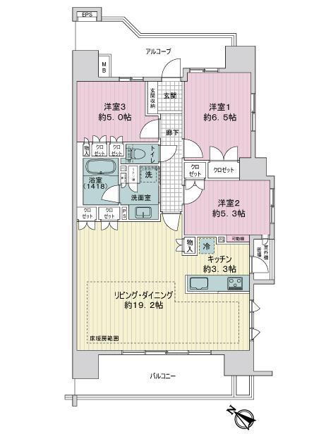 3LDK、価格4680万円、専有面積84.01m2、バルコニー面積11.61m2
