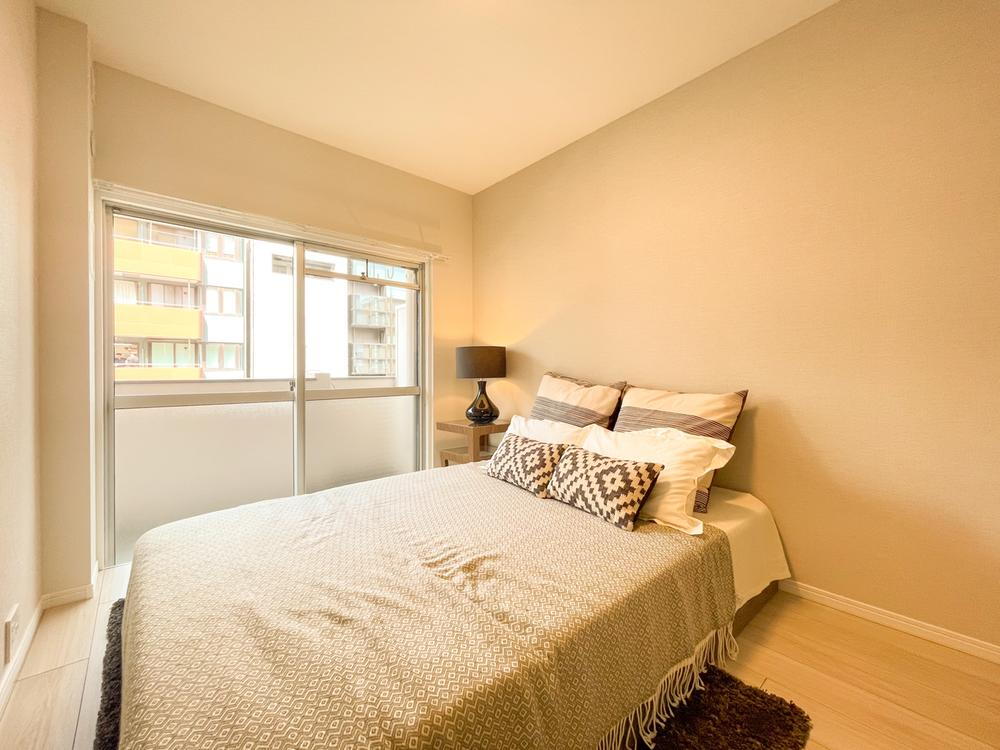 ベッドを置いてもゆとりのある洋室。バルコニーに面した窓から自然光が入り、快適な睡眠環境を実現。落ち着いた内装で心地よい時間を過ごせます。