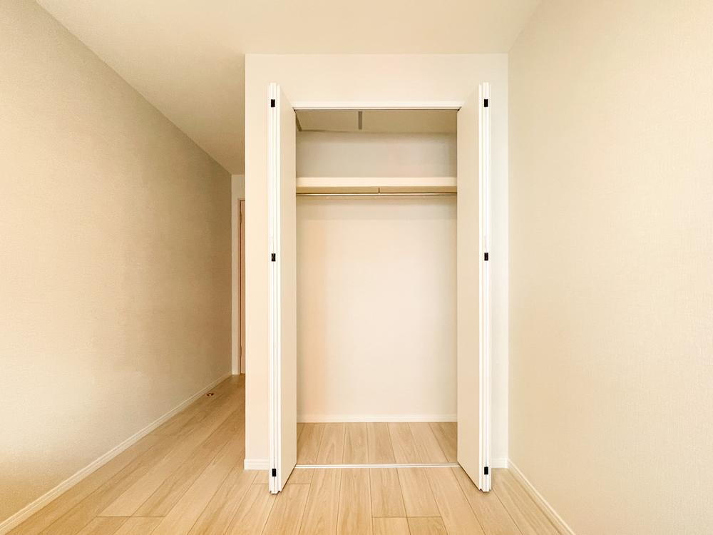 洋室には扉付きクローゼットを完備。ハンガーパイプ付きで衣類もすっきり収納でき、シンプルながら日常使いに便利な設計となっています。