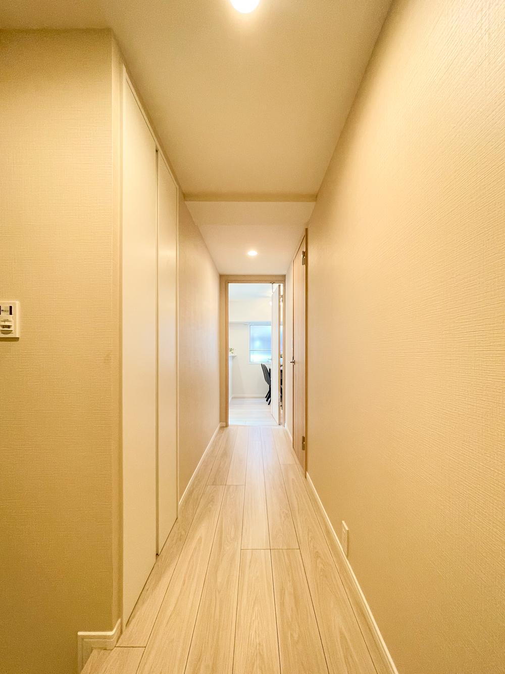 玄関からLDKへ続く廊下は明るい木目調で統一。シンプルで清潔感のある空間が住まい全体を柔らかく演出し、落ち着いた暮らしを支えます。