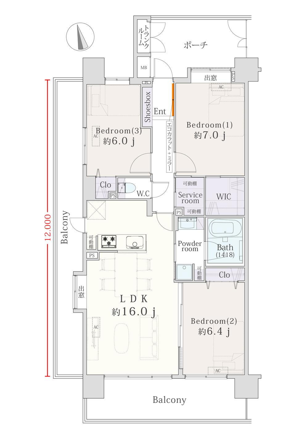 バルコニー面積26.1m2
