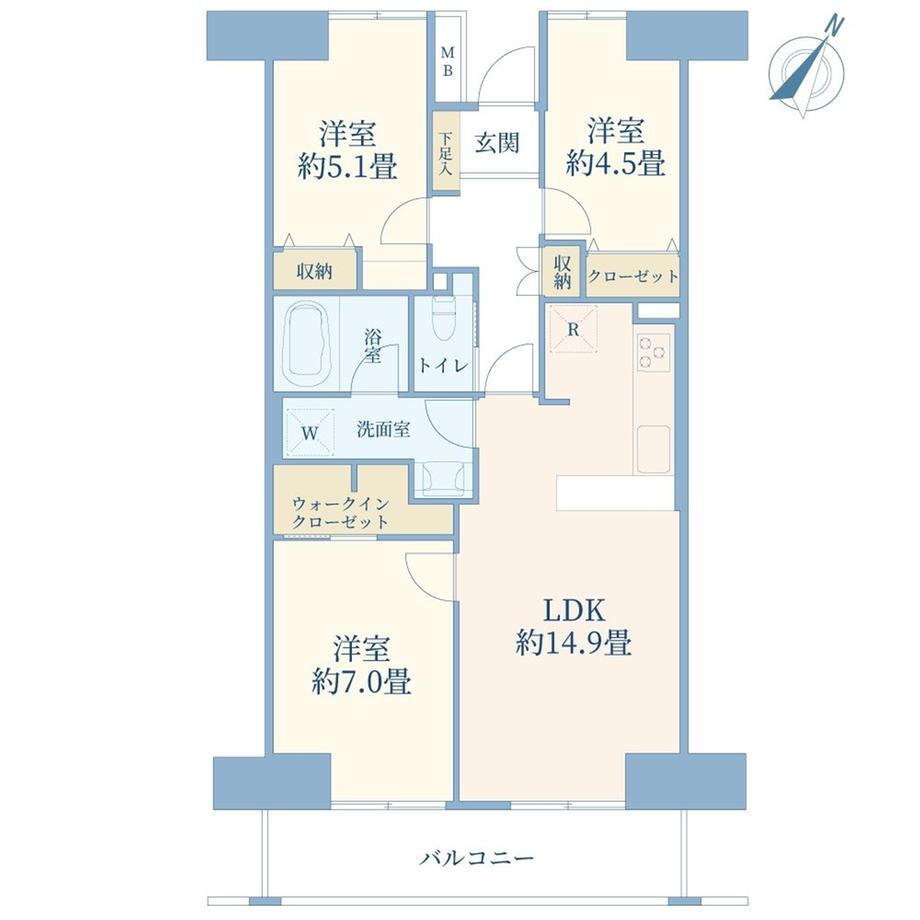 3LDK、価格5490万円、専有面積73.54m2、バルコニー面積9.52m2 73.54m2の3LDKタイプです