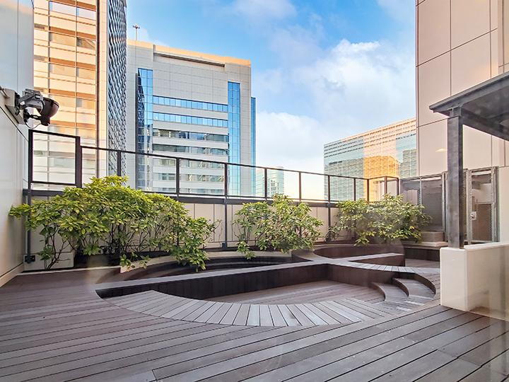 28階には植栽に彩られた「スカイデッキ」を設置。開放感の中で眺望を楽しめます。 -