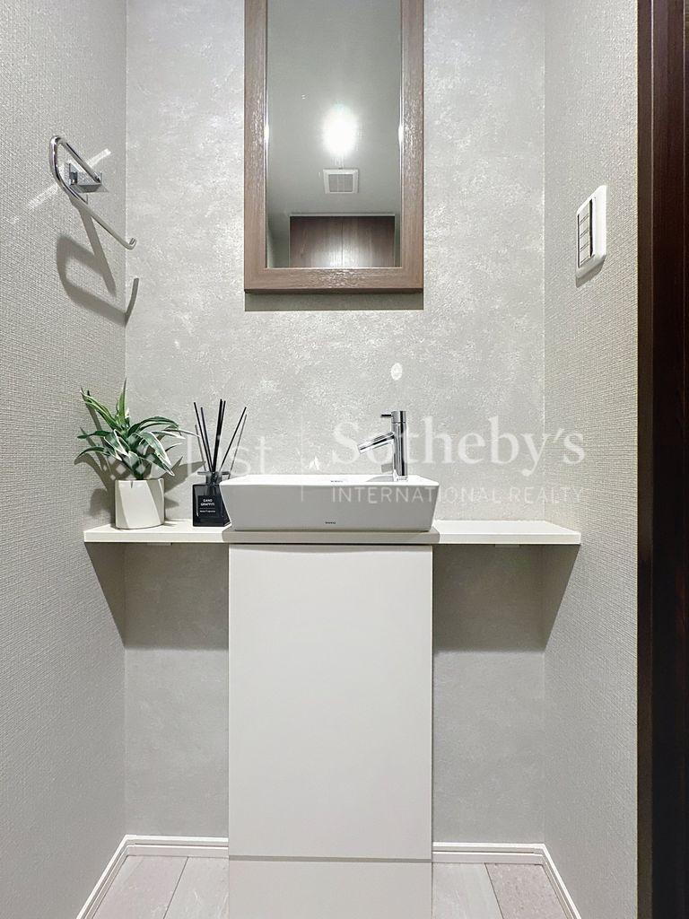 レストルーム内にはコンパクトな手洗い場がございます。来客時にも重宝する設備。 -