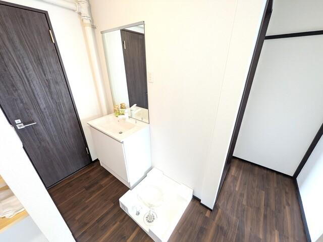 ワイドな鏡の洗面台