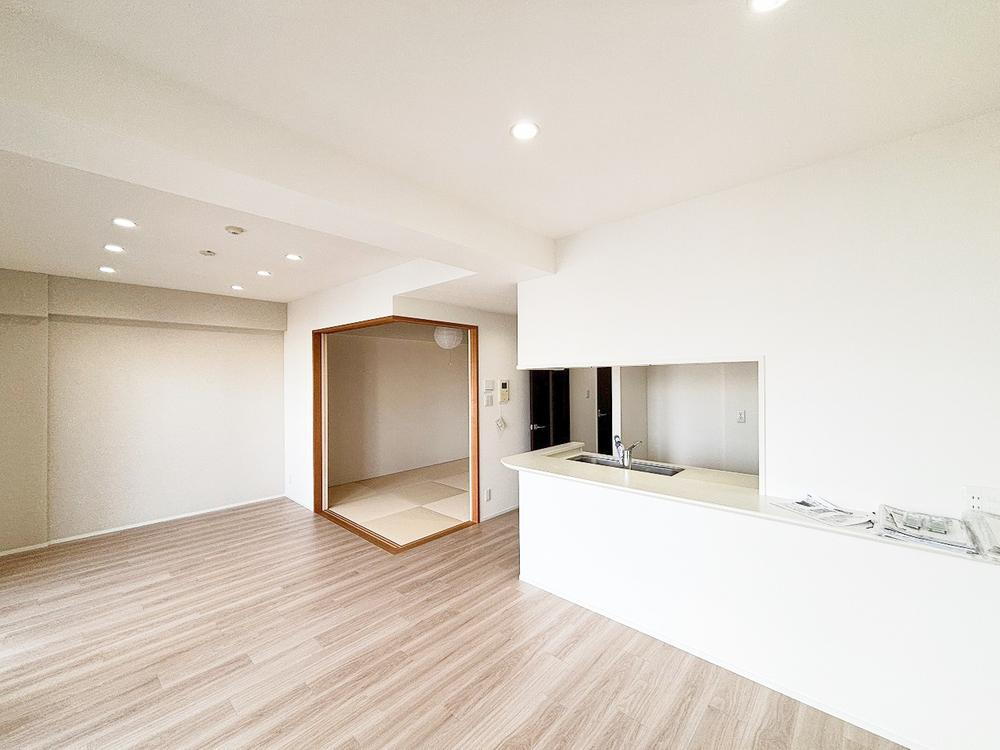 15帖超のゆったりとした広さのLDK♪リビング隣の和室を開放すれば20帖超の大空間に早変わり☆大型の家具もゆとりをもって配置できる広さです。 -