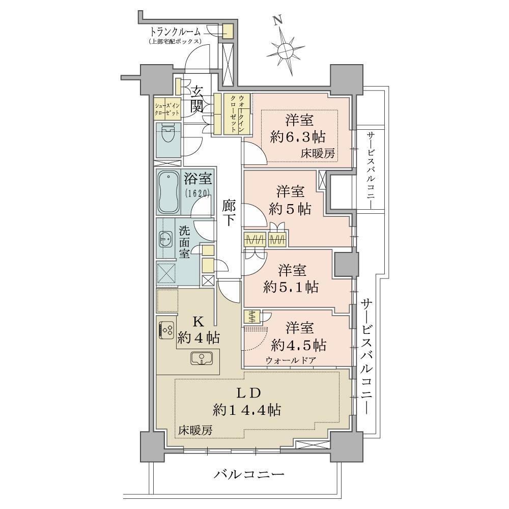 4LDK、価格9180万円、専有面積90.57m2、バルコニー面積21.44m2