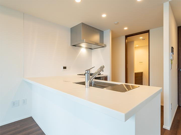 フルフラットなカウンターキッチンには壁もなく、LDKに圧迫感を与えません。