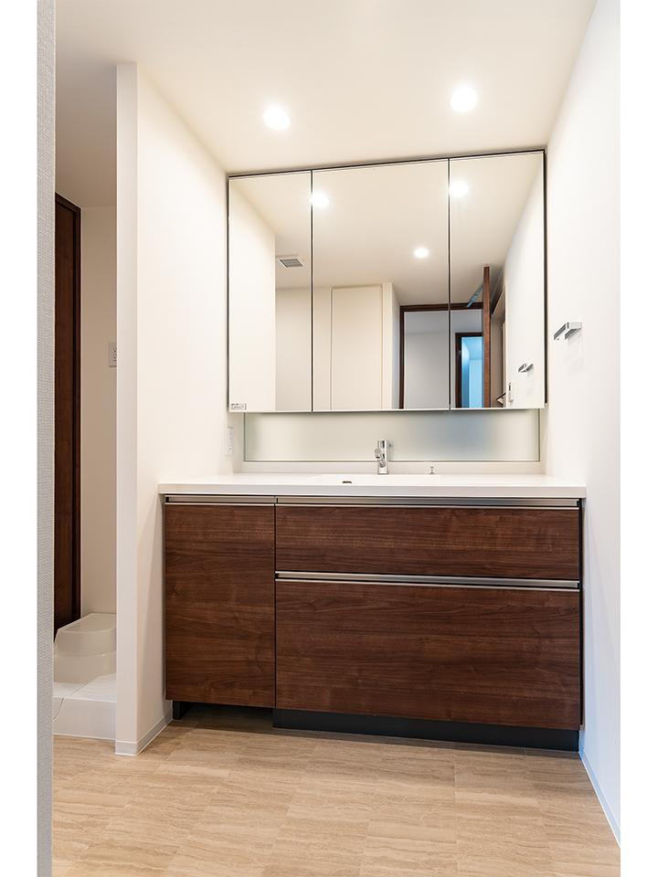 ボウル下収納、鏡裏収納の他、リネン庫も完備。タオルや洗剤のストックなどの収納スペースが充実しています。 -