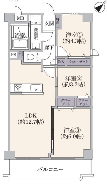 3LDK、価格4480万円、専有面積57.14m2、バルコニー面積8.05m2