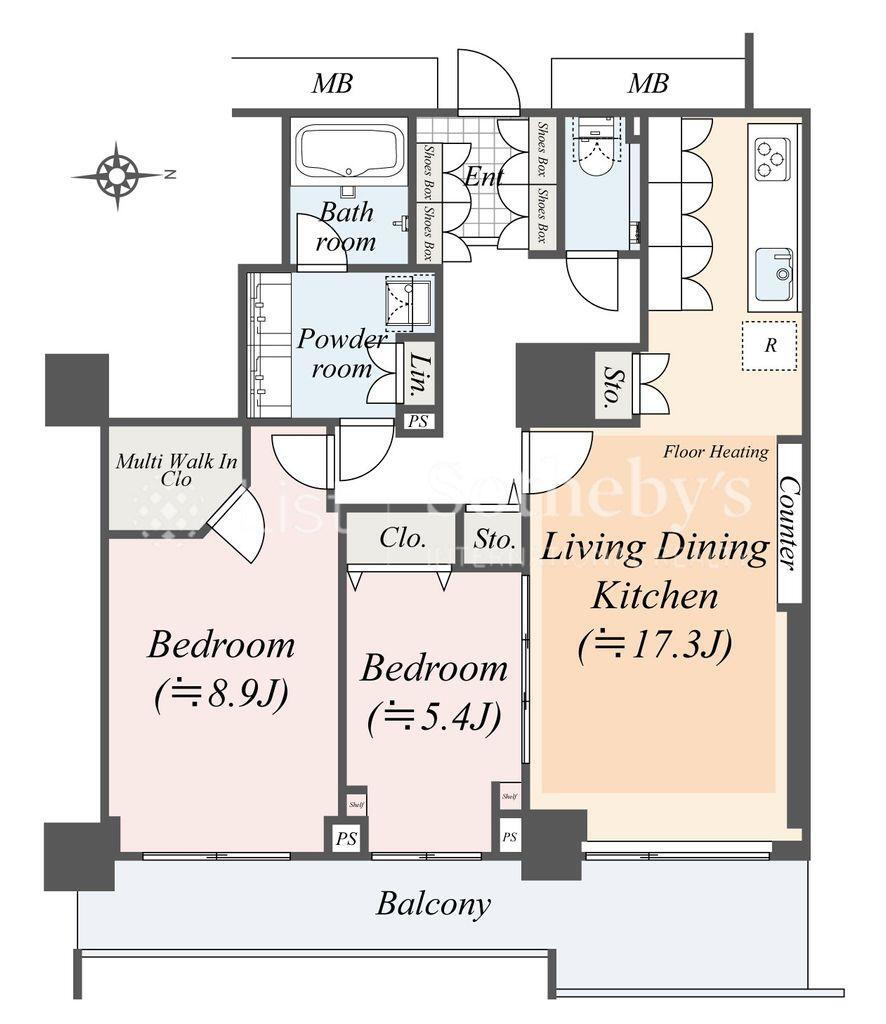 2LDK、価格1億3500万円、専有面積78.4m2、バルコニー面積13.69m2 現況が異なる場合は現況優先とさせていただきます。