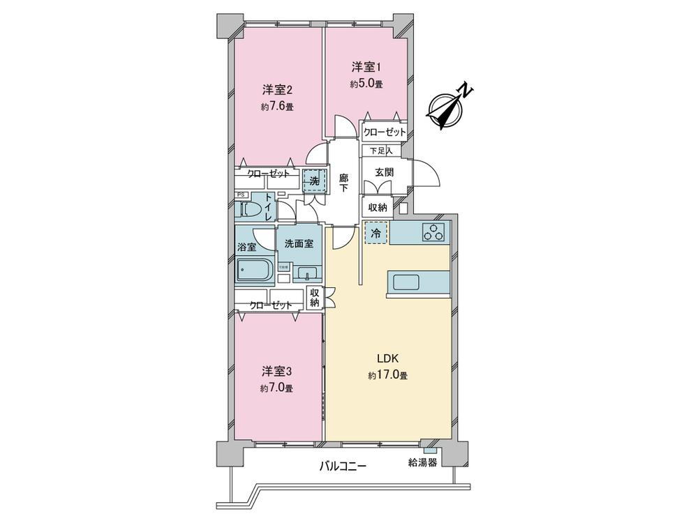 3LDK、価格3899万円、専有面積76.34m2、バルコニー面積9.36m2