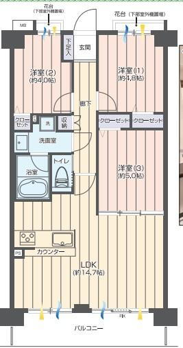 3LDK、価格2980万円、専有面積60.72m2、バルコニー面積8.12m2