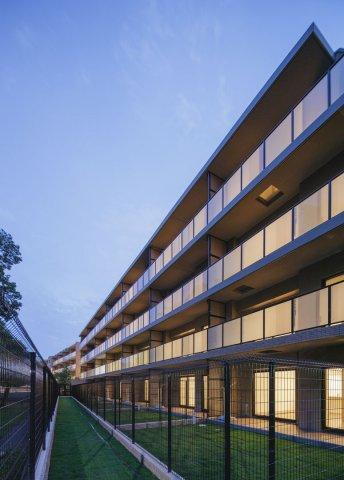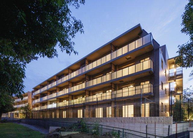 近代的なデザインのマンションでありますが、低層なので、隣接の公園に馴染んでいます。