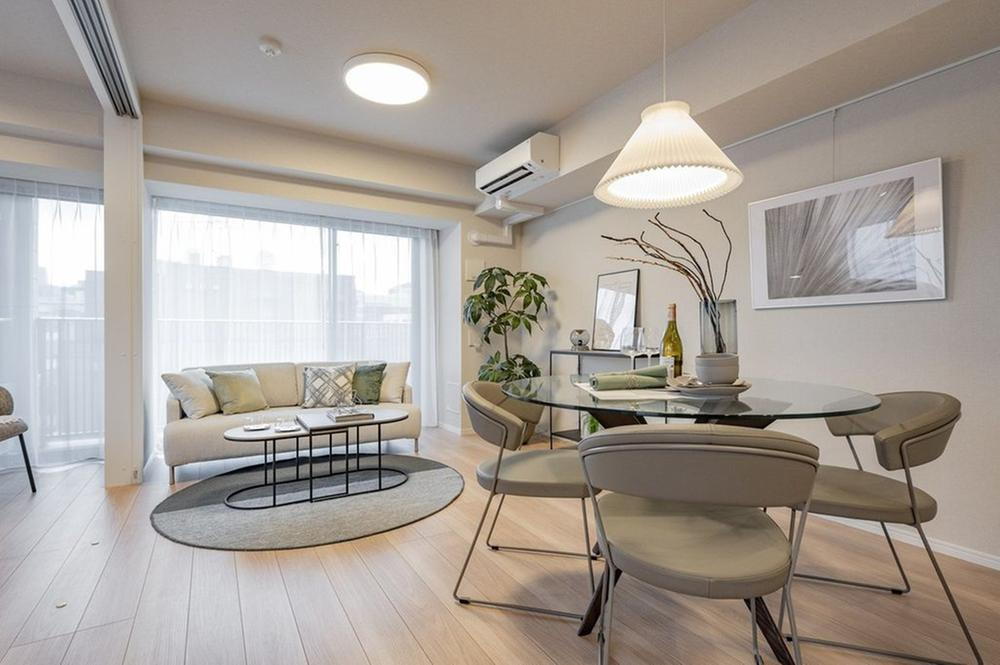 大きな窓からたっぷりの陽光を取り込み、開放的なLDKは約15.2帖の広さがあり東南角部屋です。ピクチャーレールがあり、お好きな絵画やご家族のお写真、ドライフラワーなどを飾ることができます。